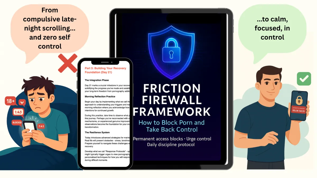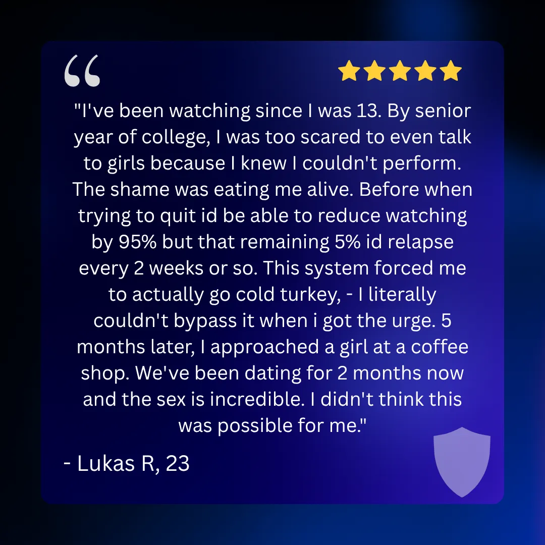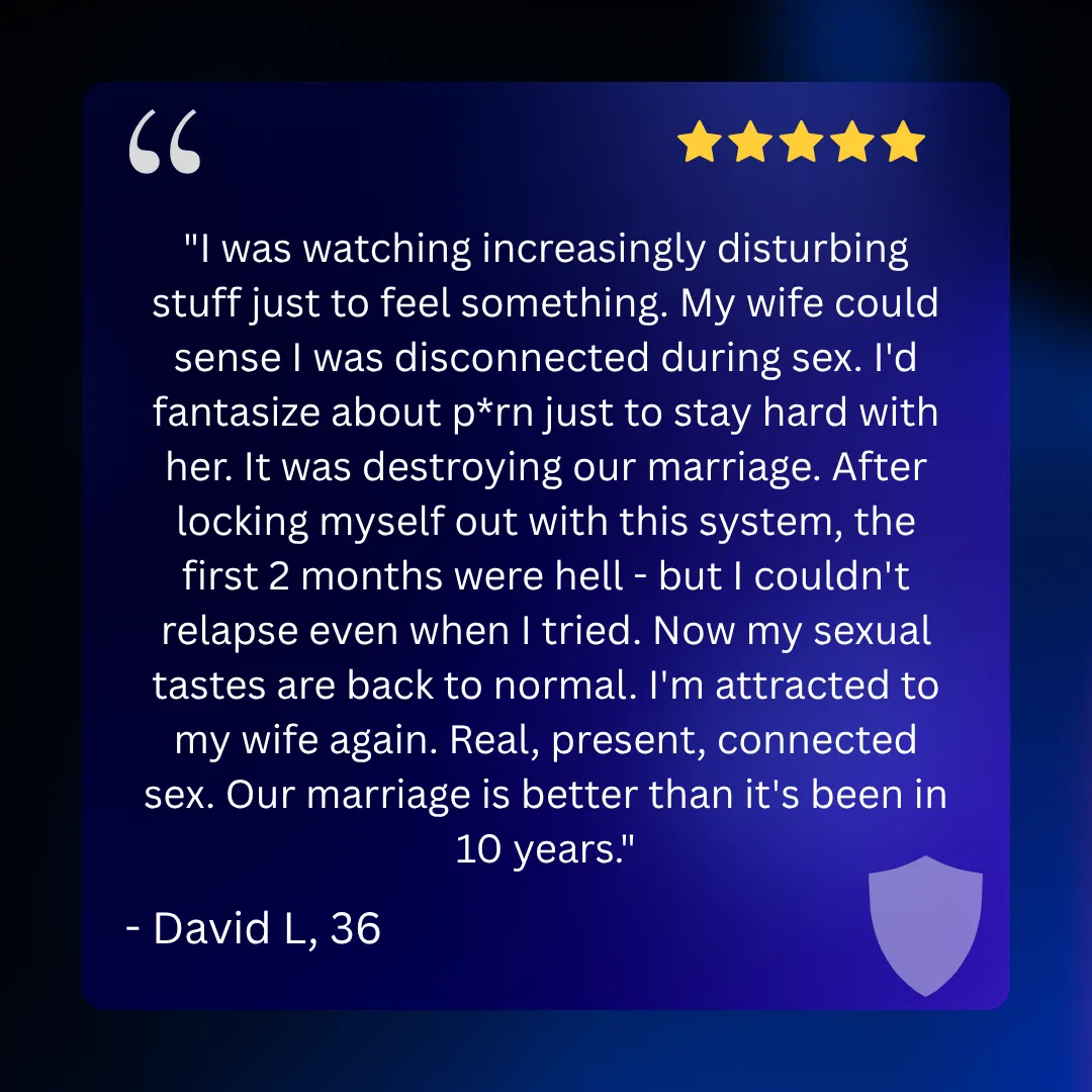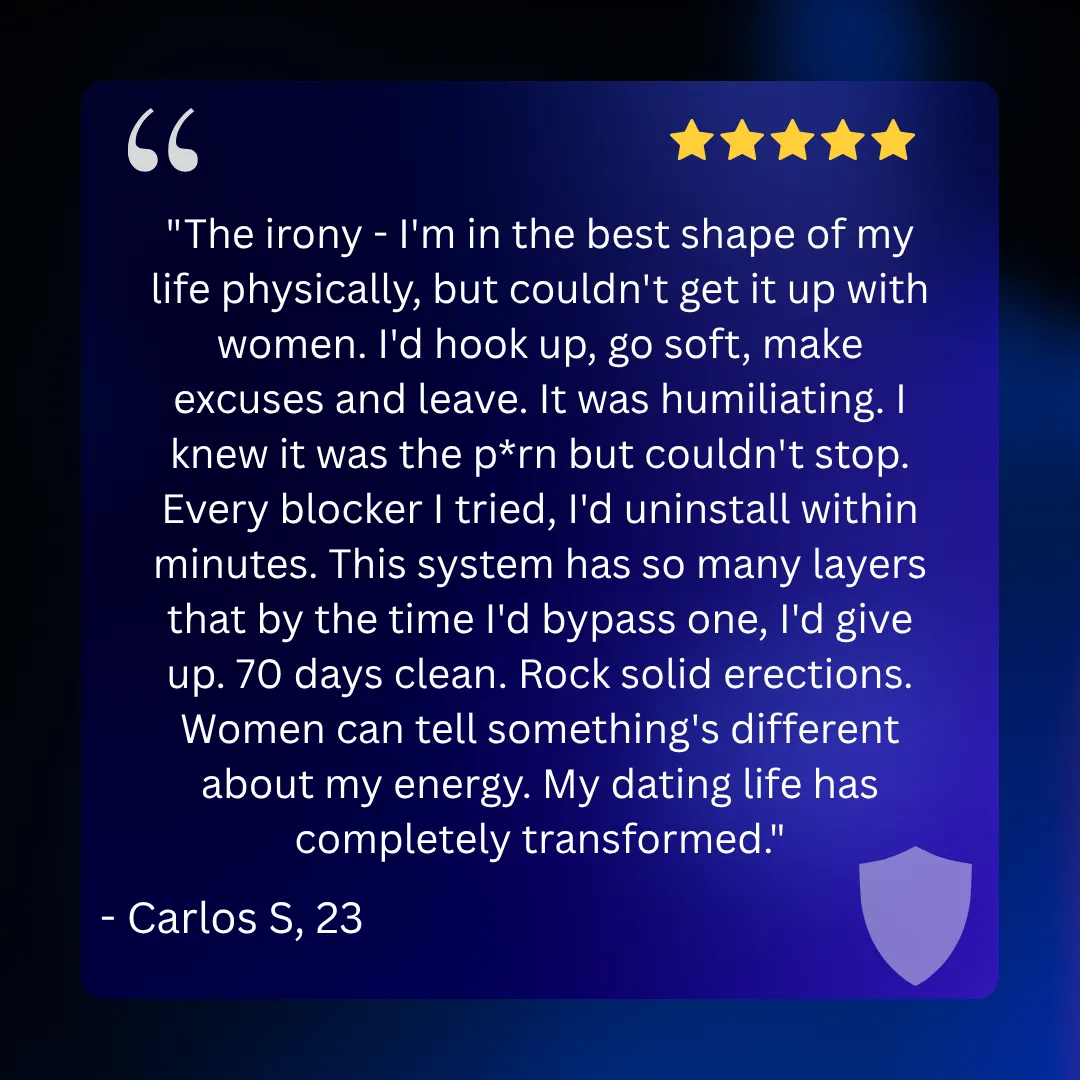 Most guys notice immediate benefits - the mental relief of knowing p*rn is inaccessible is instant. Within the first week you will not even try as you will have fresh motivation to quit, after urges come and you cant access it you will go longer without p*rn than ever in your life, you'll have more energy and mental clarity. Sexual benefits (morning wood, stronger erections, natural attraction to real women) typically appear between weeks 4-12, depending on how long you've been using p*rn. These positive effects come and go in waves for weeks at a time, after some time abstaining you experience the "flatline", which is completely normal and a sign of your brain healing. The longer you've been addicted, the longer the reboot takes - but the system keeps you locked out during the entire healing process. Full healing can take months to even a year, which is why locking yourself out forever is the only logical solution.